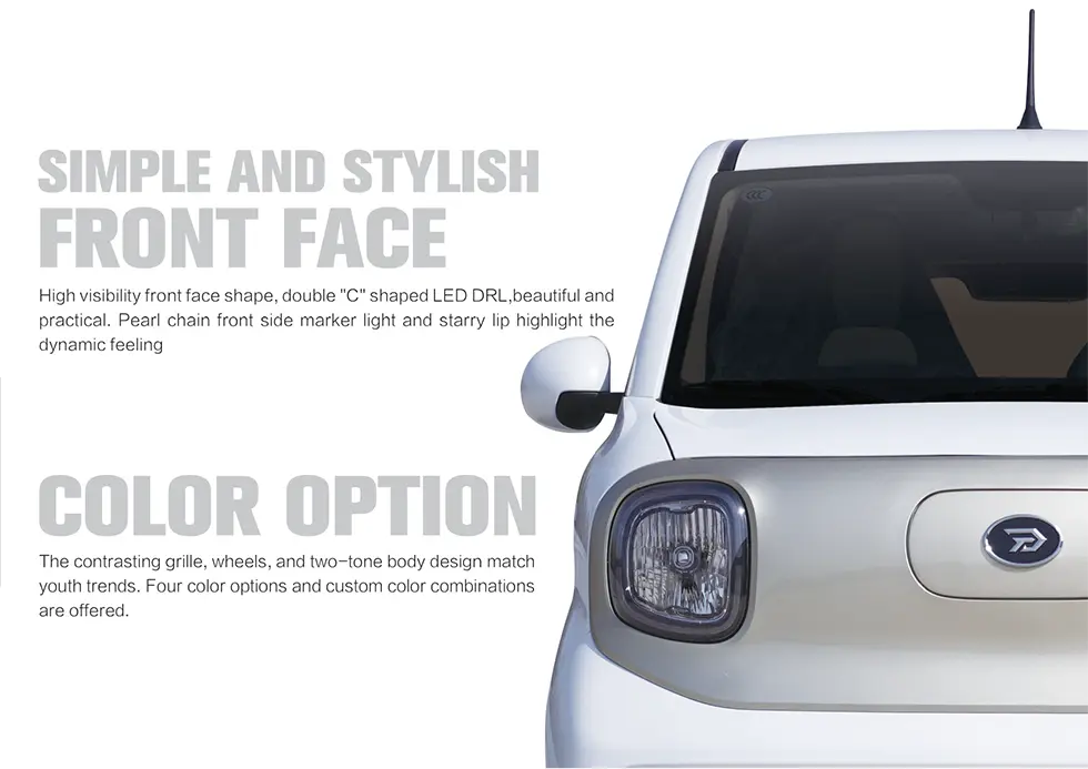 The Overall Exterior Of The Vehicle Adopts A Fresh Color Scheme, Resembling A Sweet And Tempting Macaron Dessert. The Closed-Off Design Is Simple And Smooth,Paired With Round Black Headlights, Blending Cuteness With A Touch Of Fashion.