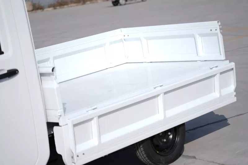 Closed cargo box, with strong sealing, can protect goods from weather conditions; The rear is equipped with a double door structure, and there is also a door opening design on the side, which facilitates multi-directional loading and unloading of goods and improves usability.